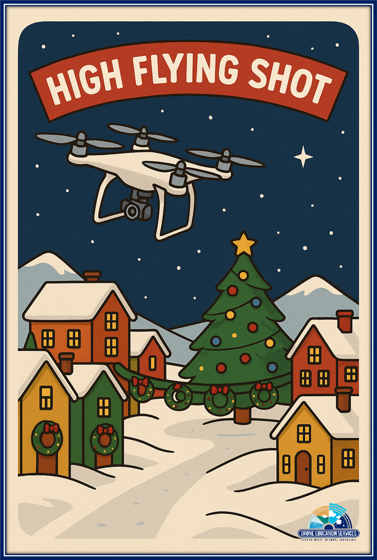 Elevate your drone flying experience with Drone Education Services 2025 gift to you, “Holiday Shots Every Drone Pilot Should Know”. We have identified the essential video shots for you to make your Season Magical. This eBook is filled with creative tips and ideas to inspire drone enthusiasts of all skill levels. Whether you’re a beginner or a pro, this ebook of drone video shots is our Holiday Gift to you. Say Cheese!